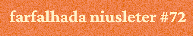 A farfalhada niusleter é o meio mais livre e satisfatório por onde espalho, na internet, meus escritos fragmentários de muitos temas e tons: dos arranhões filosóficos e políticos baseados, quase sempre, no debate sobre civilização e ecologia, aos meus haicais, haibuns e zuihitsus da vida cotidiana. Alguns dos textos que compartilho aqui estão presentes no meu último livro, um miscelânea fragmentária chamada Retalhos. Atrair inscritos é sempre uma alegria, mas dá trabalho. Se você acompanha e aprecia esta niusleter, e conhece gente que também faria o mesmo, compartilhe, indique.