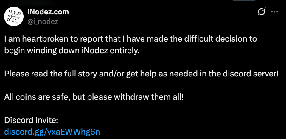 iNodez has made the decision to shutter so make sure you withdraw your FIRO from there as soon as possible. They close for good on the 31 December! Thank you to iNodez for the amazing service they have offered over the years.