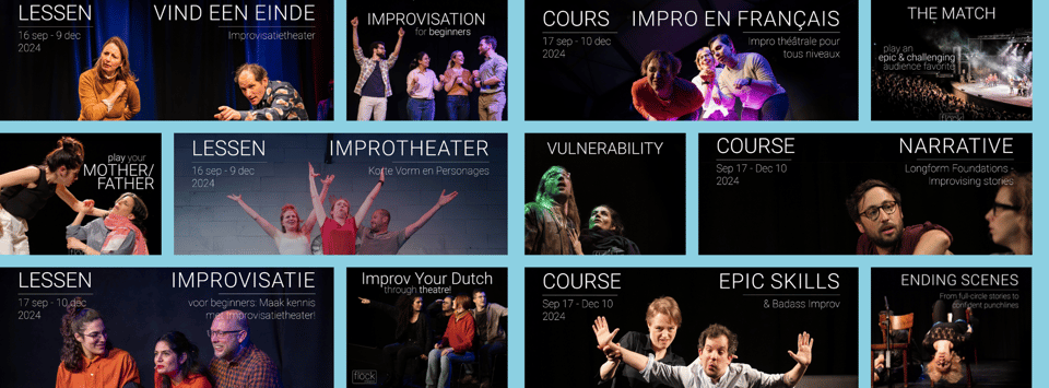 Bij deze cursus met onze nieuwe docent Jeroen leer je goed naar elkaar te luisteren, heerlijke fouten durven te maken en los te laten. Samen met je groepsgenoten ga je verrassende en leuke scènes neerzetten. Je zal zien dat je jezelf gaat verrassen en met een glimlach de deur uit loopt.