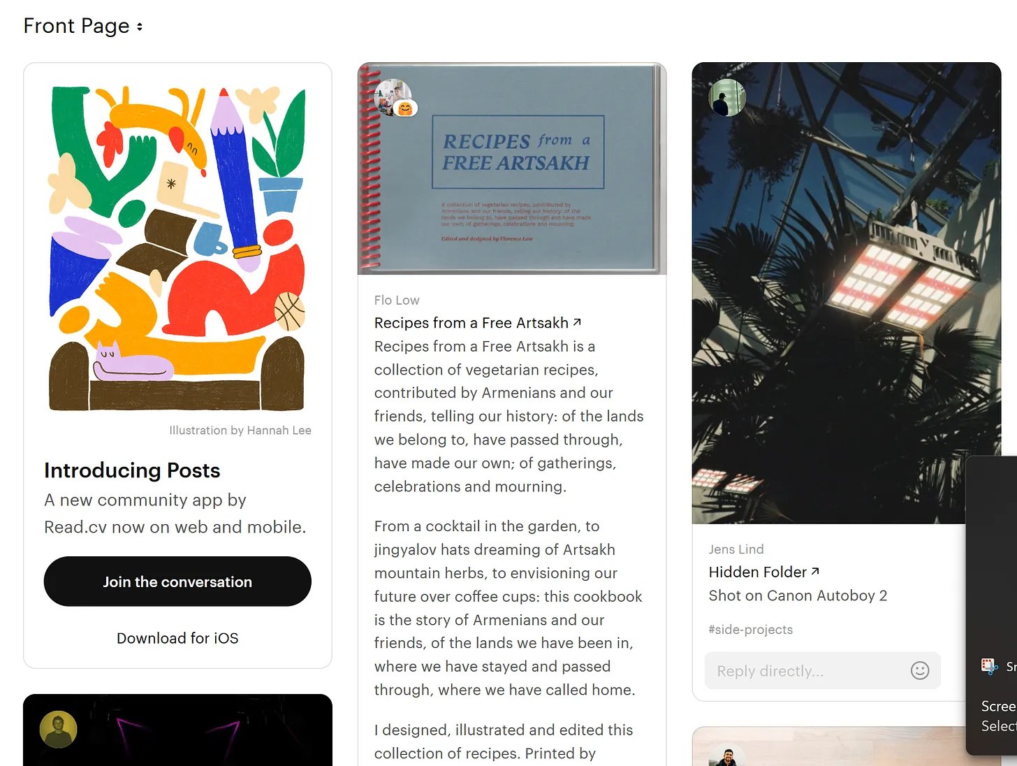 Read.CV, a plain-text CV and resume platform. I find this format far easier to read than PDF CVs, with much better design than EnhanCV. You can check out my CV, and (for now, at least) my project Recipes from a Free Artsakh is featured on their front page: