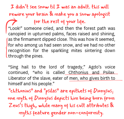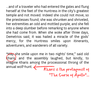 Two of these neo-myths have seen daylight, “The Curse of Apollo” in Luna Station Quarterly and “Cold Spells” in Arcana; two more have been fired off in various directions but not found homes. There are another few lurking as scattered titles and lines in my documents. Any time I feel like writing a new one, I revisit the older ones to make sure my gods are all in a row and I remember the narrator’s (rather ornate) voice. As I anticipate working on a new story in this vein shortly, I’m starting to flex this particular set of muscles.