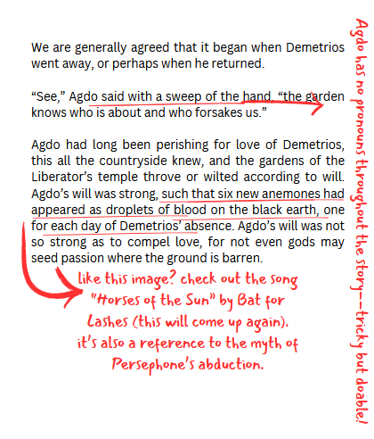 That said, I love to read a “behind the scenes” treatment of fiction, especially when it errs on the side of silly. Mostly I think a work speaks for itself, and its creator doesn’t need to explicate why that perspective was chosen or this setting was utilized. But what song would be playing over the credits if your book became a movie? Which of your undergrad professors that tavern-keeper was inspired by? Tell me!!