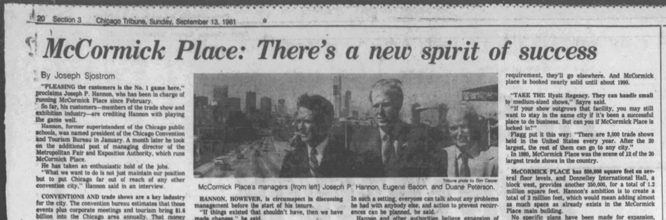 McPier is the glue holding Chicago’s major business-and-pleasure tourists together. While it’s been colloquially reduced down to a Mc-name, the Metropolitan Pier and Exposition Authority, or MPEA, is a governor-and-mayor-appointed board that runs the municipal corporation that owns Navy Pier, the McCormick Place convention center, and Wintrust Arena, as well as other connected properties.