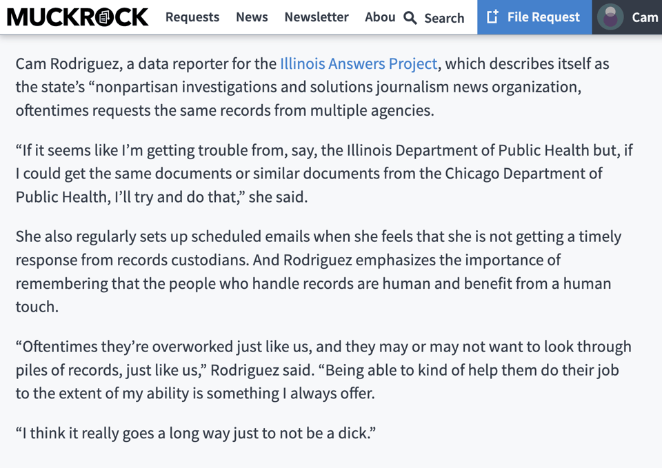 I got an interesting note from the Cook County Sheriff’s Office about narrowing my request about ChatGPT/Copilot use, which indicated there was such a volume of records and conversations that parsing through and possibly redacting information (!) would be unduly burdensome. I’m figuring out how to reply.