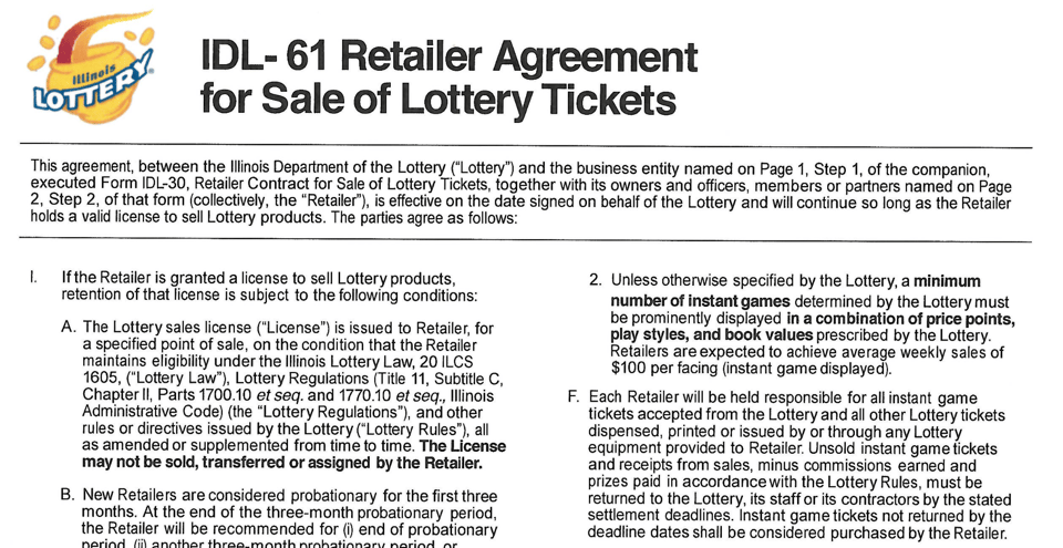 - Data or documents sufficient to show the number and dollar amount purchased of current (1/1/2025 to 1/29/2026) individual game tickets, as well as the amount paid out by game. Please release data in a machine-readable format, like an Excel or csv file, if possible. - Data or documents sufficient to show the volume of tickets sold per store/retailer, as well as the volume of winning tickets per store/retailer. If possible, please also include the amount of revenue commissions per retailer, and include the retailer name and address if available. Please release data in a machine-readable format. - Data or documents sufficient to show a list of claims made/accepted by trusts, LLCs or legal entities from 1/1/2024 to present (1/29/2026). For each claim, please include the name of the trust or legal entity, the prize amount, the date of the win and the purchase location of the winning ticket. - Data or documents sufficient to show "extremely lucky winners," or winners who have won more than three prizes of $10,000 or more through the Illinois Lottery from 1/1/2024 to present (1/29/2026). Please include the total number of prizes won, the prize amounts for each win, the dates of each win and the purchase location of the ticket. - Data, documents or reports that show the individual "special causes" investments made by Illinois Lottery with revenue. Please break out each special cause by line item, organization name, amount invested/donated, date of the donation and any other associated metadata with the special cause. Please release data in a machine-readable format like a .csv or .xlsx, unless the information is better received via .pdf. - A current (1/29/2026) list of licensed retailers for the Illinois Lottery. - A current (1/29/2026) list of retailers who have had their license revoked for the Illinois Lottery. Please include the date of termination of the license, as well as the address of the retailer, name of the retailer, and any possible reasoning (if available) for the revocation.