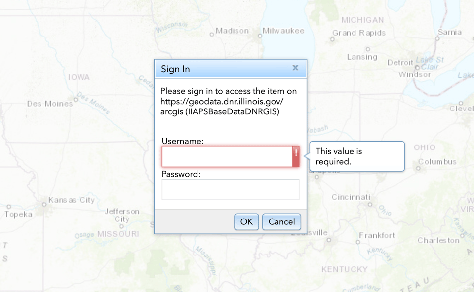 Anyway. I could go down rabbit hole after rabbit hole, but one thing that I really want is access to a different ArcGIS map, which is focused on archaeological and paleontological sites in Illinois. The map is linked on the IDNR site, but it’s password protected.