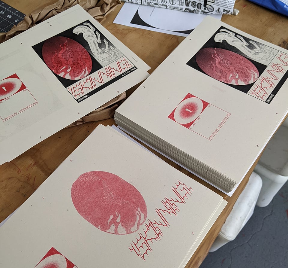 I’m getting started on reprints (ie, what I originally wanted to have for SPX lol) so hopefully will have a bunch more zines/books for these! Reprinting a 2nd edition of Skinning (single color/saddle stitched) + trying to get a very limited print run done of my comic Viscera from… 2021… Also trying to have something new but no guarantees.