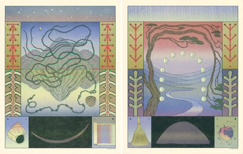 My Risolab residency project is done… “Promises” is a set of prints and an art book loosely inspired by woodblock print charms, divination practices, and how we try to make sense of our wishes, futures, and place in the world.