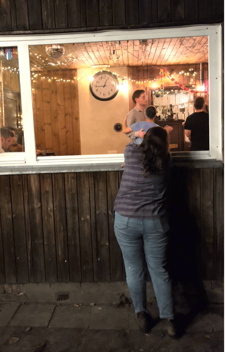 It’s my last Saturday night in Warsaw. Yankl and I are wandering through these Finnish style wood houses that were built quickly after the war to house the workers who were rebuilding the city. We find what we are looking for. A dark brown wood house with both warm light and the sound of a fiddle emanating from the windows. Our friends, Baymele, are playing a joint bill concert with the Polish band, Napięcie. We’ve walked into the Embassy of Traditional Music. Everyone is sitting, listening to Baymele’s set until Dimitri says, “this is dance music, so get up and dance.” For the rest of the night the dance floor, both the one inside and the improvised one that spills over into the yard is full.