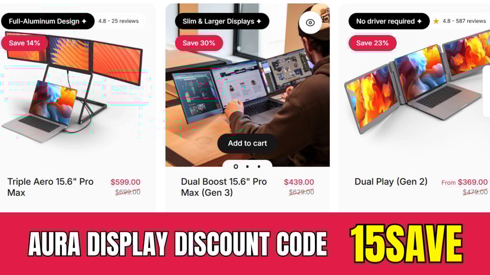 ๐ก And hereโs the best part: you donโt have to pay full price. Right now, you can shop triple and portable monitors at Aura Displays and use discount code 15SAVE to unlock an extra 40% OFF + a free gift ๐ โ stacking on top of discounts already available on their site.