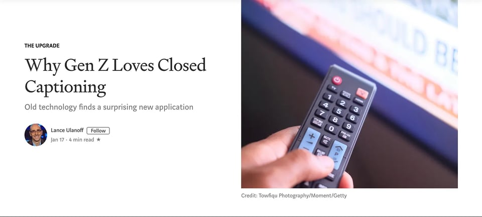 Gen Z in the US are watching TV with Closed captioning and parents started to ask themselves why. Here is an article on the subject that helped me understand this new trend.