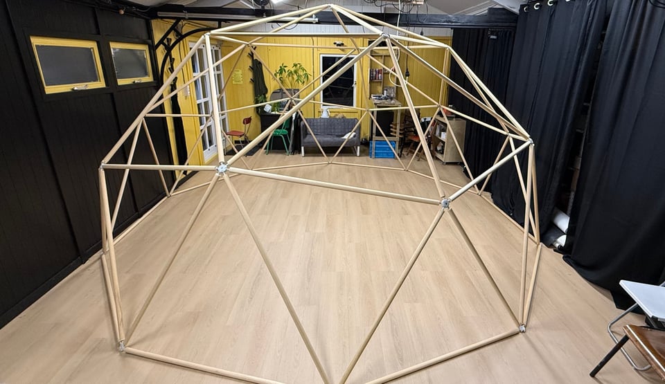 One part is visual. On one hand, Tanine Dunais is in charge of the furnitures and accessories for each night, making the picture unique to that night. On the other hand, the broader set and staging is something I imagined: a play happening at all time in a shelter to overwinter. This translated by a dome that will occupy the center of the play. And this week I had my first try outs after measuring, cutting, drilling, screwing and assembling!