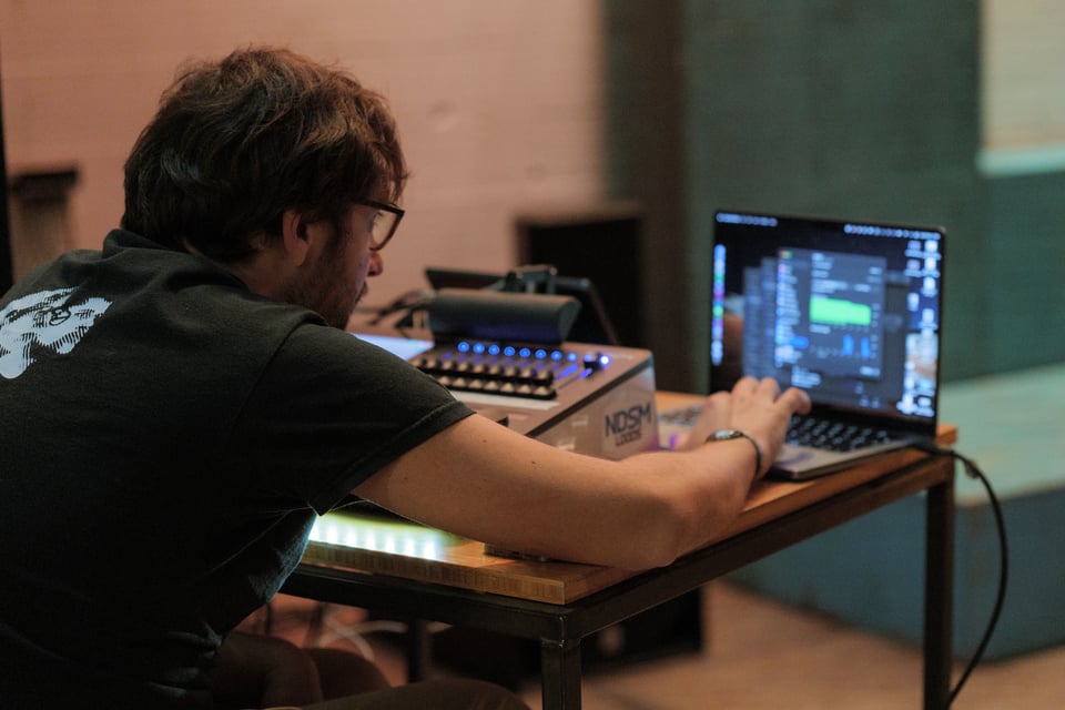 When we started producing shows at NDSM Theater in 2021, we got access to a big empty cube, with lights hanging, and no house-technician. 3 days before our very first show there, I heard that they didn’t even have a light desk. Within those 3 days, I learnt as much as possible about light desks, research options online, chose and bought one, got it, learnt to program it and use it, plugged it at the theatre, had to troubleshoot why it wasn’t working, made it work and eventually operated lights during one of the shows and played the second one!