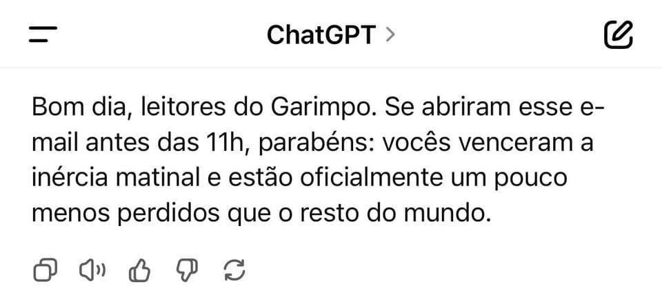 Falando em Chipson, além de humanizá-lo excessivamente e usá-lo de passatempo, tenho me divertido com outra função: fazer prompts pedindo para ele fazer curadorias de notícias, como se fossem newsletters de recomendação.