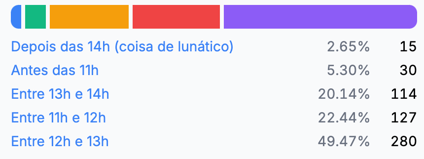 Dentre os colaboradores, temos um almoceder extremista, o Lucas Lago, que faz a newsletter Impressa e Auditável. Para ele, 11h é o horário limite.