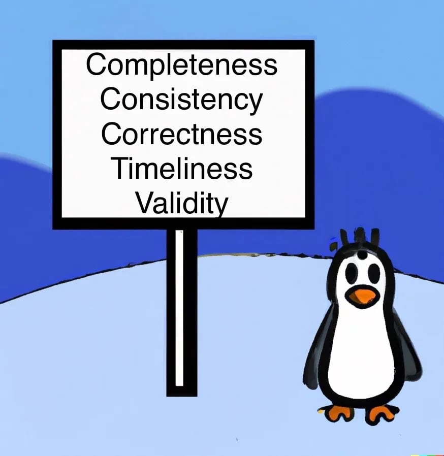 Completeness, for me, is one of the easier dimensions to grok. For our data to be complete, there should be no nulls where nulls are not allowed - that may mean a record exists but a non-nullable field is blank, or an expected record could be missing entirely. Uniqueness is sometimes included in lists of data quality dimensions; I prefer to think of it as an element of completeness - “overcompleteness,” in a sense.