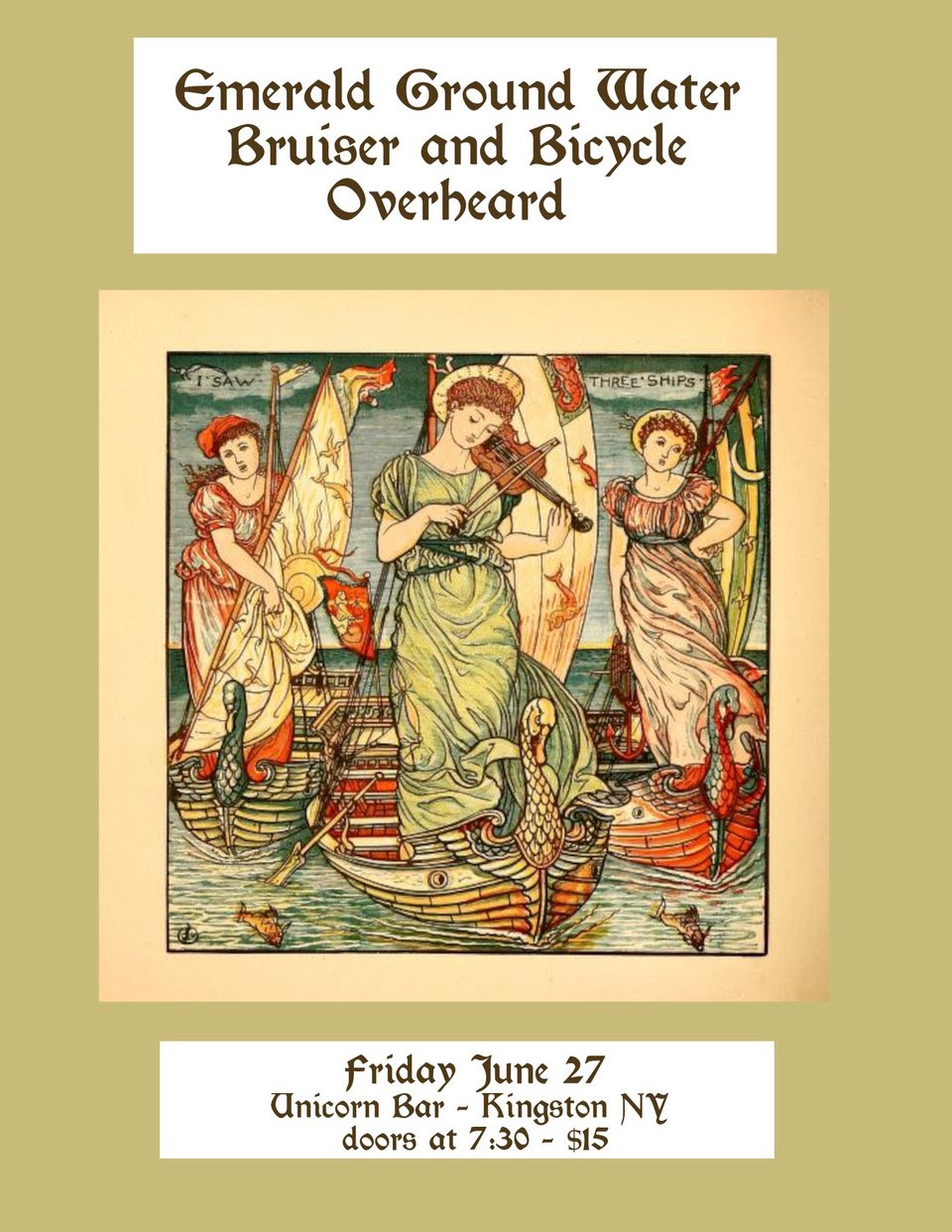 Overheard has a show in Kingston on June 27th!! With Bruiser and Bicycle and Emerald Ground Water! Come and see.