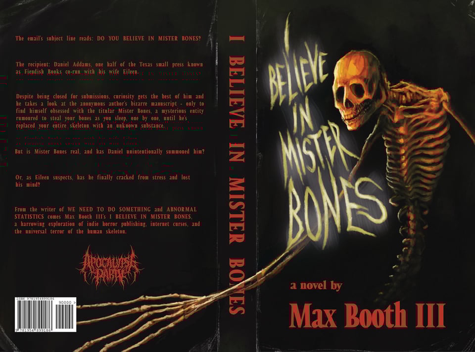 I wrote a new novel and it’s out now through Apocalypse Party. It’s called I Believe in Mister Bones and it’s about a married couple who run an indie horror press together. It’s about the internet, and the ghosts it’s left behind. It’s about the universal terror of the human skeleton, and the claustrophobic nightmare of body dysphoria. It’s about curses and belief and dreams and love and anxiety and the complete clusterfuck of the U.S. healthcare system. I guess it’s about a lot of things.