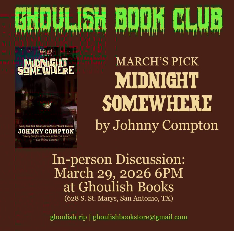 The GHOULISH BOOK CLUB continues with March’s pick: MIDNIGHT SOMEWHERE by Johnny Compton!