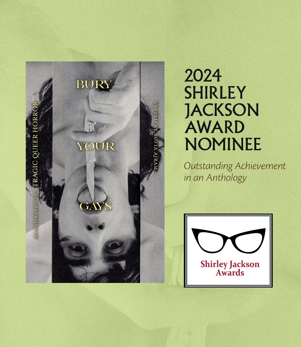 The Shirley Jackson Awards recently announced their nominations for projects released in 2024, and Ghoulish Books is fortunate enough to have our book BURY YOUR GAYS: AN ANTHOLOGY OF TRAGIC QUEER HORROR on the list.