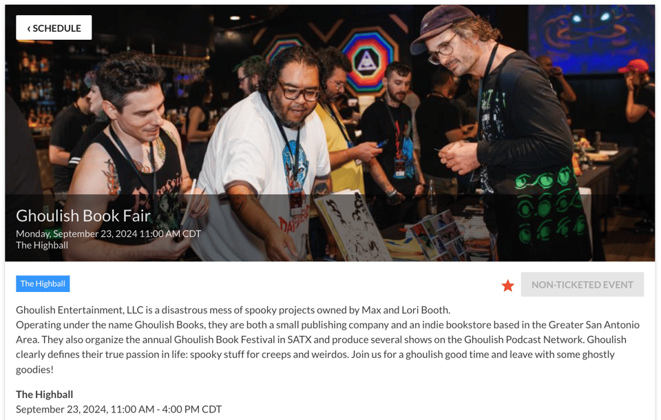 Also check out this fun FANGORIA article titled “Surviving and Thriving: Your Essential Fantastic Fest 2024 Guide” which had this to say about our Ghoulish Book Fair: