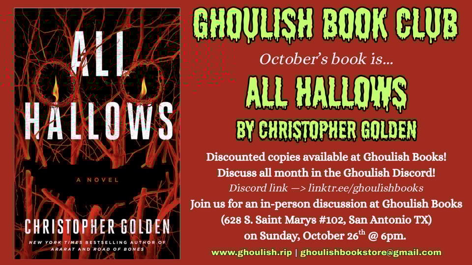 The GHOULISH BOOK CLUB continues with October's pick: ALL HALLOWS by Christopher Golden!