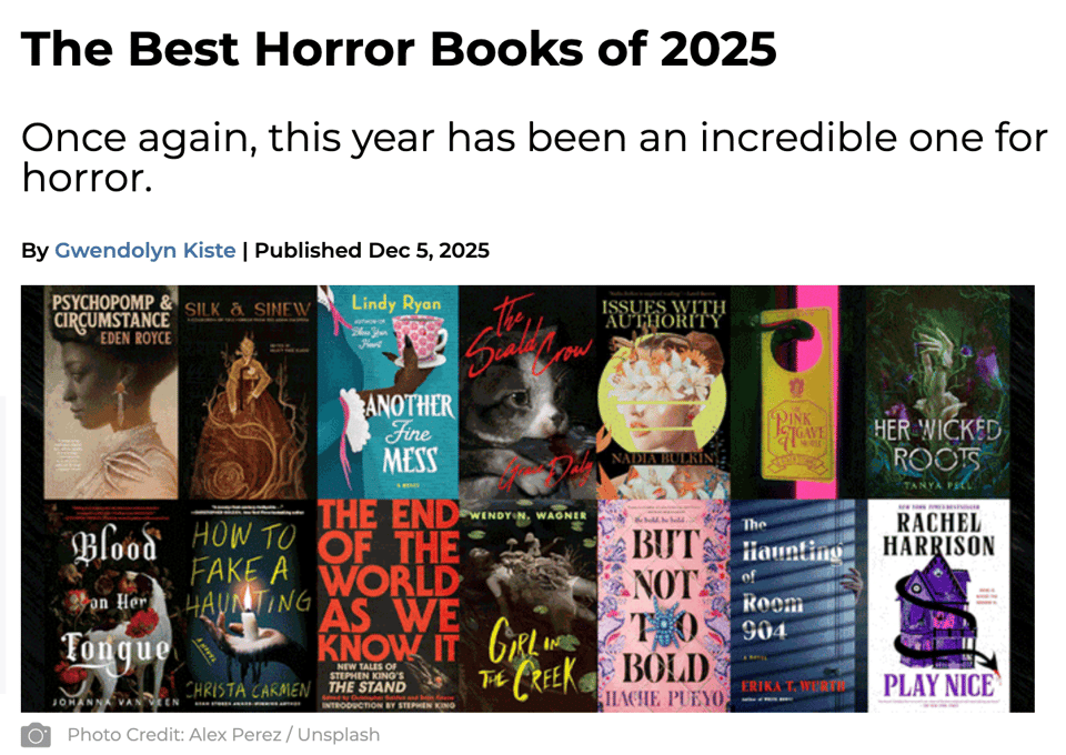 Over on The Lineup, author Gwendolyn Kiste published her Best Horror Books of 2025, and we’re stoked to see Nadia Bulkin’s Issues with Authority included: