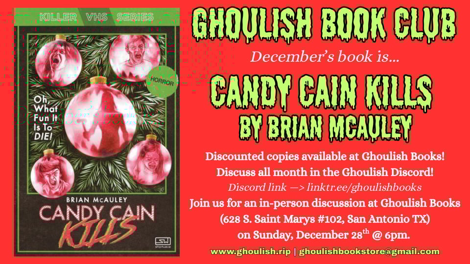 GHOULISH BOOK CLUB – CANDY CAIN KILLS (DECEMBER 28)