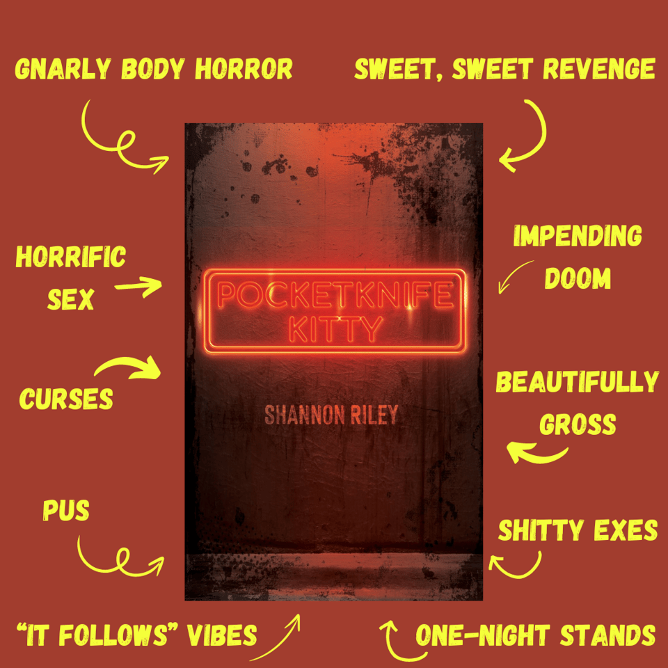 Hello, ghouls! I return to this spooky newsletter to once again inform you that a new Ghoulish Books publication has been unleashed upon the world. Shannon Riley's debut book, a novella titled Pocketknife Kitty, is available now wherever spooky literature is sold.