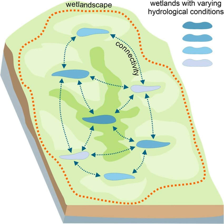 But sometimes a watershed is too big of a scale, and not focused enough on the wetlands. Another common definition of "wetlandscape" is reflected in this figure by Ma et al. (2025):