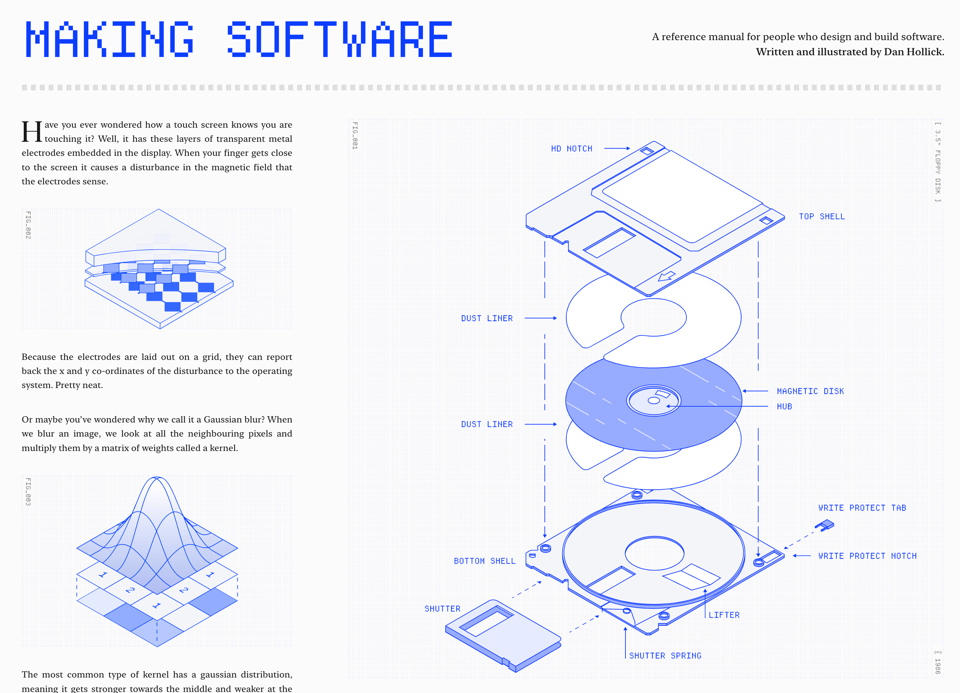 This book won’t teach you how to actually make software - it’s not a tutorial or a guide but rather something more interesting than that. It’s a manual that explains how the things you use everyday actually work.