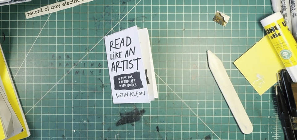 Austin Kleon maakte deze ‘zine’, vrij naar ‘magazine’, die je zelf kunt printen en vouwen tot een mini magazine. Het vertelt in 10 stappen hoe je meer kunt lezen.