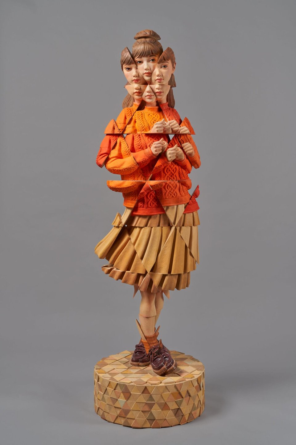 Yoshitoshi Kanemaki uit Tokyo maakt houten beelden die je door een caleidoscoop lijkt te bekijken. Mooi gemaakt met een bijzonder resultaat.