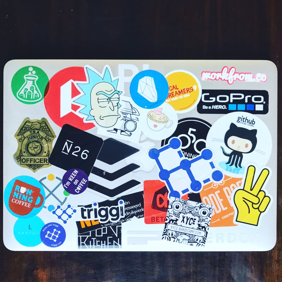 Ik doe het al jaren, stickers plakken op mijn laptop. Het vertelt het verhaal van wat ik meemaak met de huidige versie van mijn computer. Op welke events ik ben geweest. Wat voor avonturen ik heb beleefd.