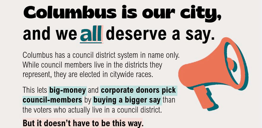 Our City Our Say is working to change how we elect City Councilmembers. We plan to put a charter amendment on the ballot this November to elect council members by only the people who live in that district.