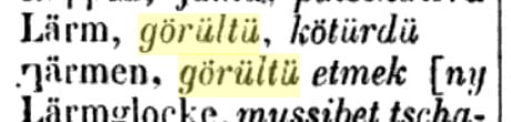 Eski sözlükler, “gürültü”nün “görültü” şeklinde telaffuz edildiğini gösteriyor: