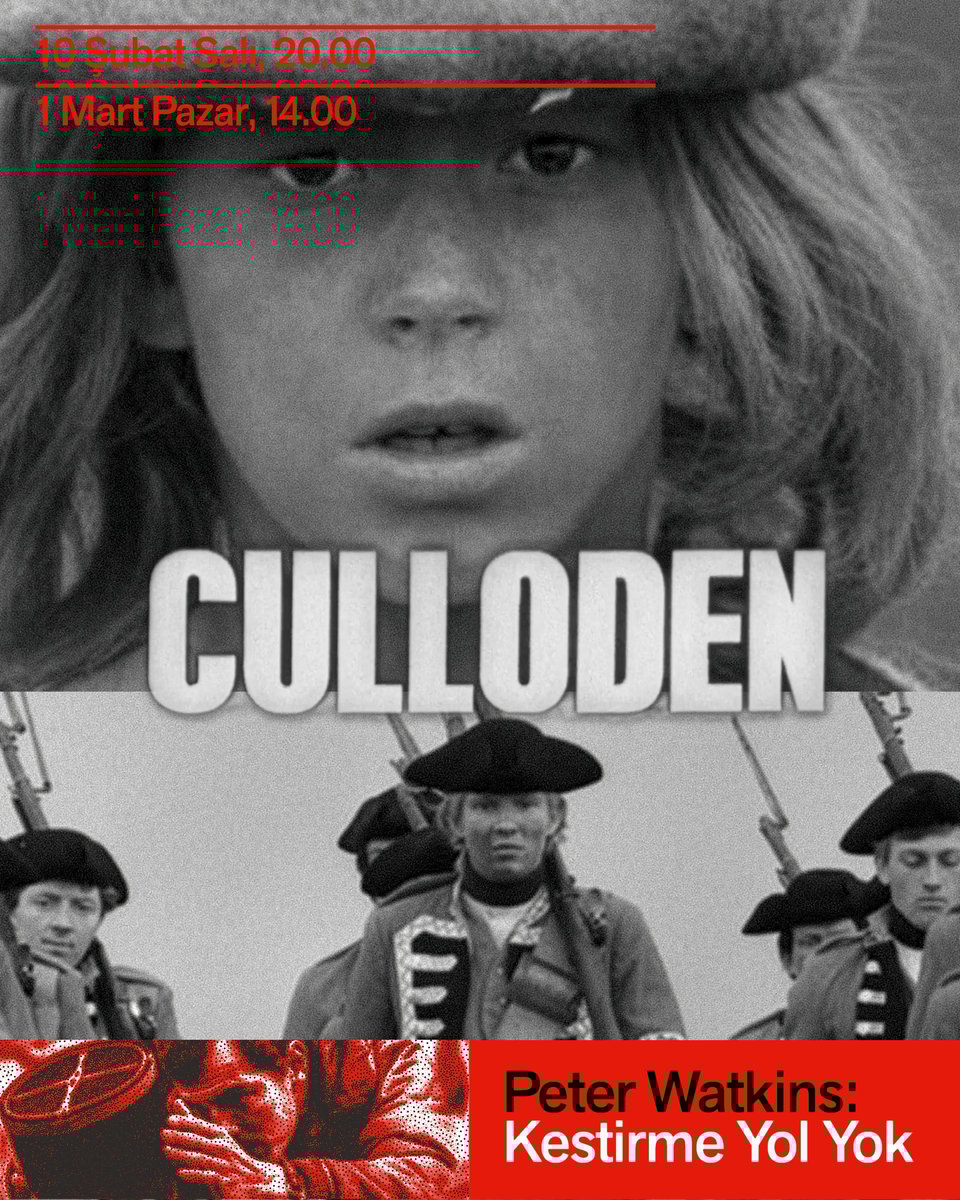 10 Şubat’ta saat 20.00’de Watkins’in ilk döneminden iki filmi birlikte gösterilecek: Savaş Oyunu (The War Game, 1965) ve Culloden Muharebesi (Culloden, 1964). Amatör kısa filmleriyle dikkat çektikten sonra o dönem genç ve yeni bir televizyon dili yaratmayı amaçlayan BBC tarafından işe alınan Watkins’in kurum için çektiği ilk film Culloden Muharebesi idi.