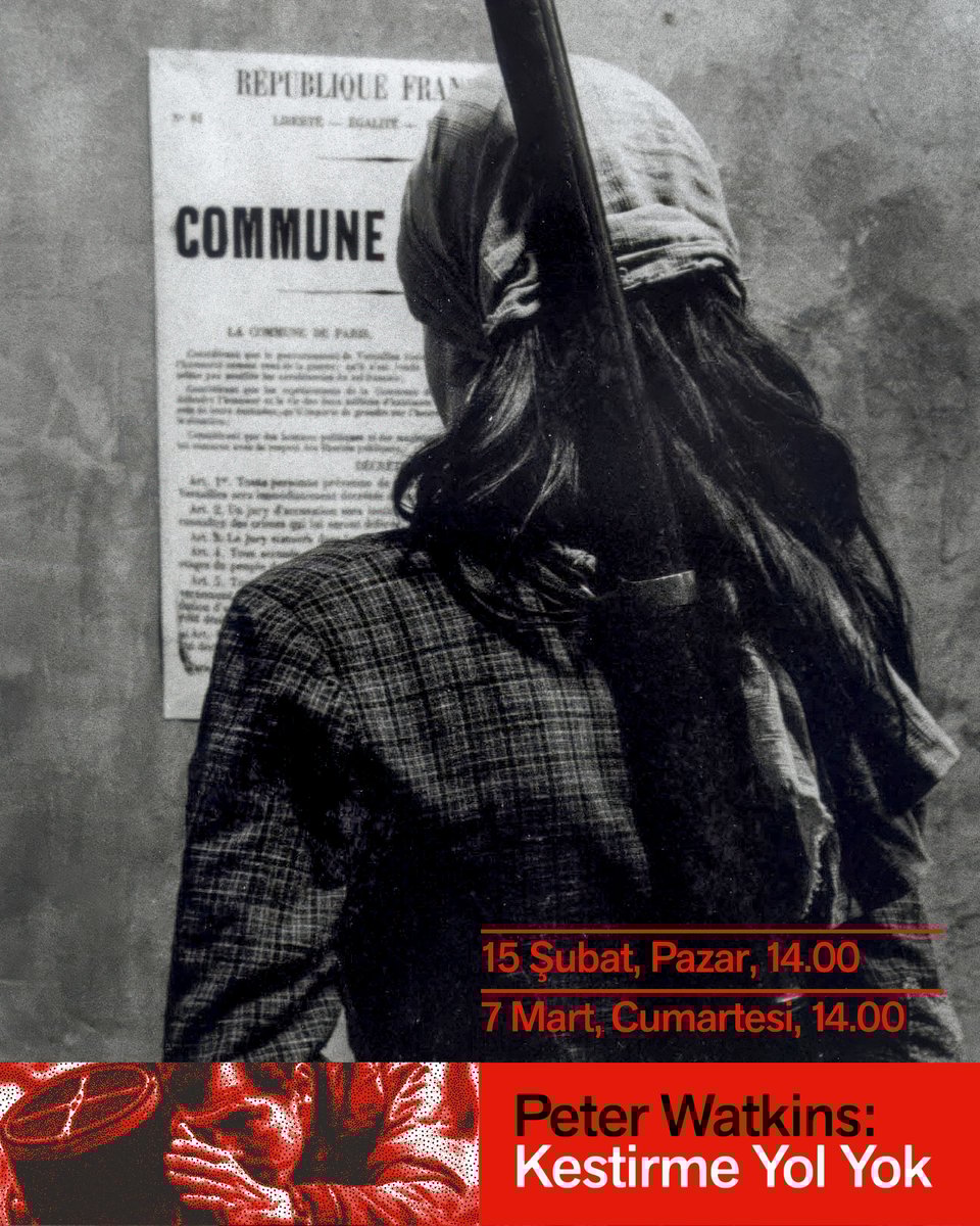 Haftanın diğer gösterimi ise 15 Şubat Pazar günü 14.00’te gerçekleşecek Komün (Paris, 1871) (La Commune (Paris, 1871)). 345 dakika uzunluğundaki film, Watkins’in son filmi olmasının yanı sıra aynı zamanda üretim ve anlatım konusundaki fikirlerini de en detaylı haliyle uygulayabildiği film. Paris Komünü’nü, boş bir fabrikayı tarihin çeşitli isyanları ve hak taleplerinin yankılandığı canlı bir mekana dönüştürerek yeniden hayal eden filmin üretiminde yer alan amatör oyuncuların ve yapımda yer alanların aradan geçen 25 yılın ardından halen Rebond pour la Commune ismi altında aktif bir topluluk olduğunu da paylaşalım. Biletler Mobilet’te.