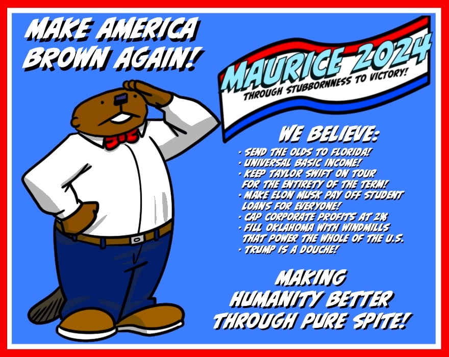 Usually, when it comes to my Maurice comics, I work ahead. As you can see from the image above, my character has been running for President, and I wrote several strips where Maurice was in a debate with Biden and Trump. I was all set to do my thing in those strips and rip into both of those candidates, but then that whole assassination thing happened, Biden dropped out of the race, and I came to realize that the Maurice comeback wasn’t to be, as I now had about twenty strips that had absolutely no meaning any more. That’s the problem with writing a current-events-based comic. Sometimes, those events are too current.