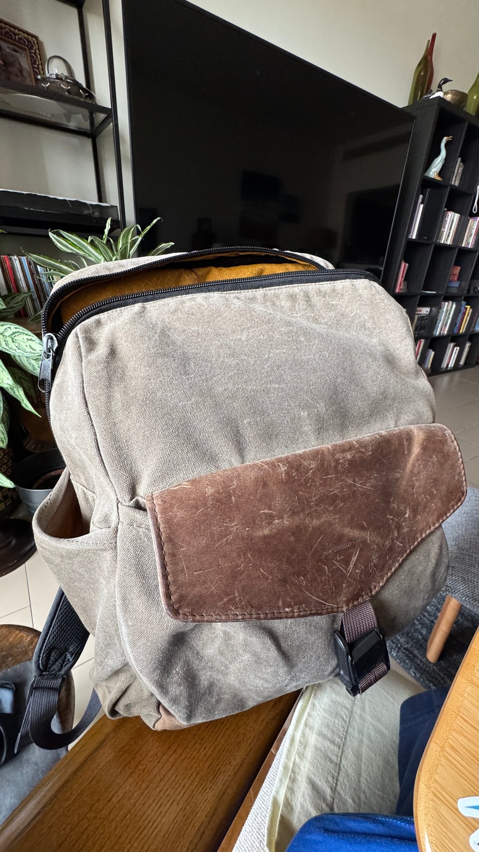 Here’s a picture that shows me with my glorious bag, while offering an excuse to show my beautiful daughter and simultaneously embarrassing her by uploading a photo online. I love the muzetto I have so much. After all of these years, the bag is still going strong and one of my most cherished items. The leather now has that glorious patina of use that all bags should have and every summer it is slung over my shoulder for day-to-day travel. I experimented with backpacks from Waterfield over the years, looking for the right one, and eventually settled on one very similar to this.
