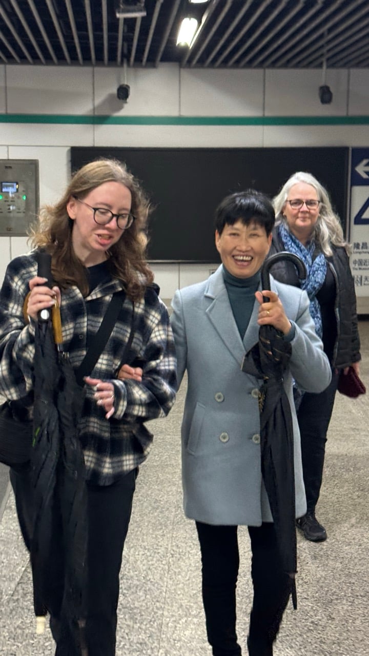 As we walked back to the subway station, we had ALL of these things in our hands. A large box of wine, candies, Pringles containers, and a bag with a full pizza in it. Gu Ping and her husband took us to the subway station and then insisted that we TAKE THE UMBRELLAS as well.