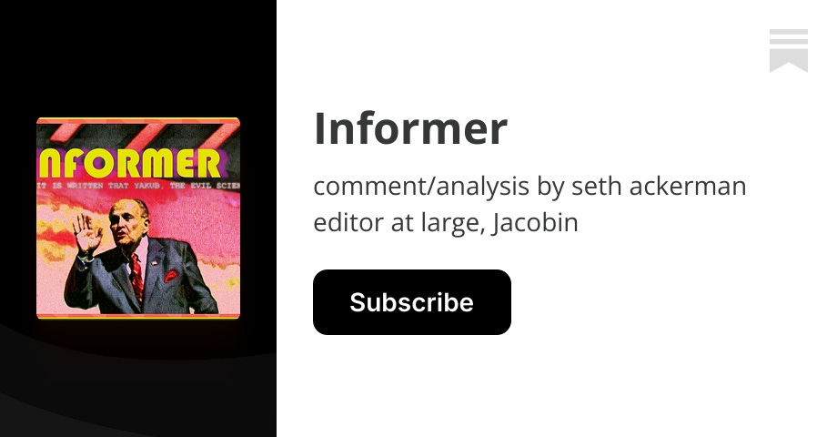 comment/analysis by seth ackerman editor at large, Jacobin. Click to read Informer, by Seth Ackerman, a Substack publication with thousands of subscribers.