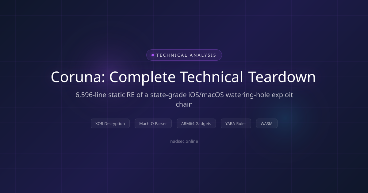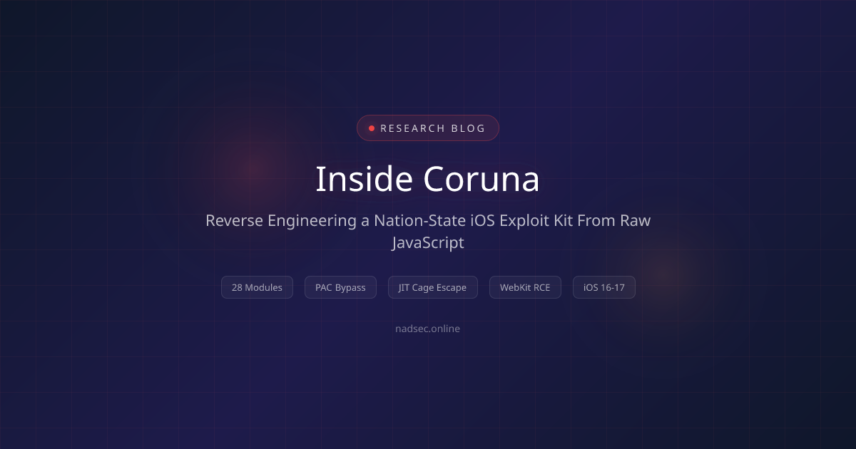 Reverse-engineered Coruna - a nation-state iOS exploit kit - from raw JavaScript. 28 modules, 500+ XOR strings decoded, 6,596-line teardown. PAC bypass, JIT cage escape, PACDB hash forgery.https://t.co/M3OMF1BQcyhttps://t.co/FMQ8uipT4r