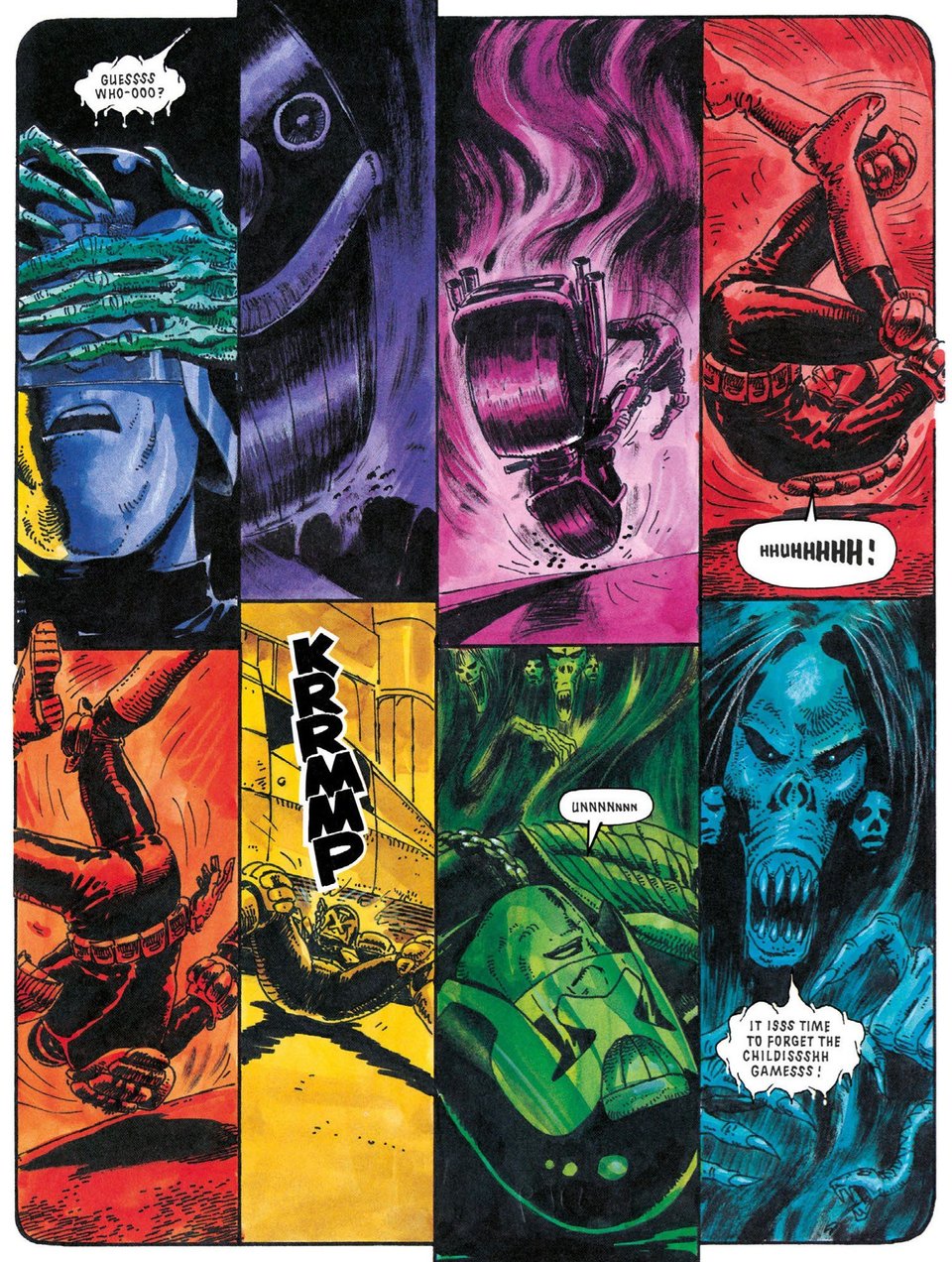 I don’t talk about it much, preferring as I do to go on about the more indie stuff, but the thing is: John Wagner’s Judge Dredd really is fucking good. Like, a lot more than you would expect compared to much of the corporate baseline on the other side of the Atlantic. And Ezquerra… it took me a long time to properly appreciate him, until I realized just how much Steve Dillon was informed by him. Necropolis, though, kind of came out of nowhere for me. Ezquerra has always had the tension between his frenetic layouts and very ‘earthly’ linework, but here he takes his heightening to a brand new level, with some truly astonishing coloring that you don’t really see elsewhere. One wonders if Dash Shaw has read this.