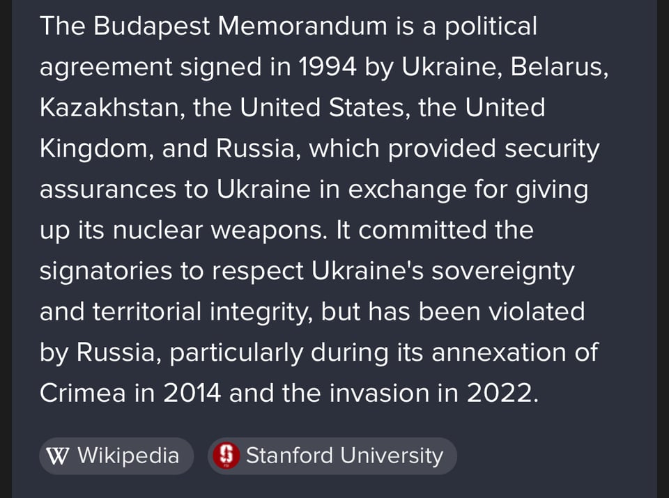 WE PROMISED TO PROTECT UKRAINE from harm in exchange for denuclearization! This Russia sht likely wouldn't be happening if Ukraine never gave up their nukes! Evil plotting long game Russian despot motherfckers man.