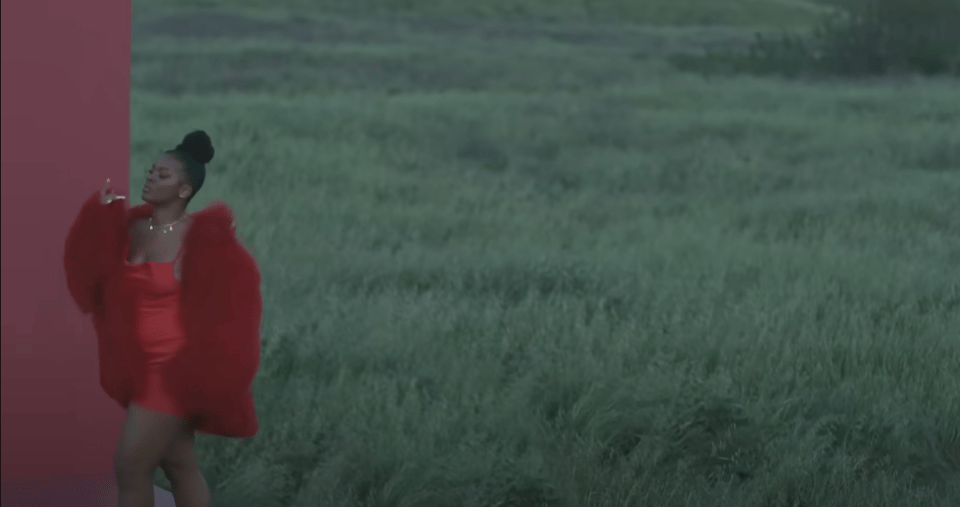 a scene from ari lennox’s “up late” music video, a song on her 2019 Shea Butter Baby album, featuring masego and directed by lacey duke, serves as the banner image. the music video is a compilation of scenes of ari outside in an open field of green, with rolling hills in the distance, and her standing in front of monochromatic backdrops to match her looks in white, copper, and red. we get a select few tight shots of ari in an embrace or with standing near masego intercut, but in large part she’s filmed alone — grooving and slow-whining while looking directly into the camera.