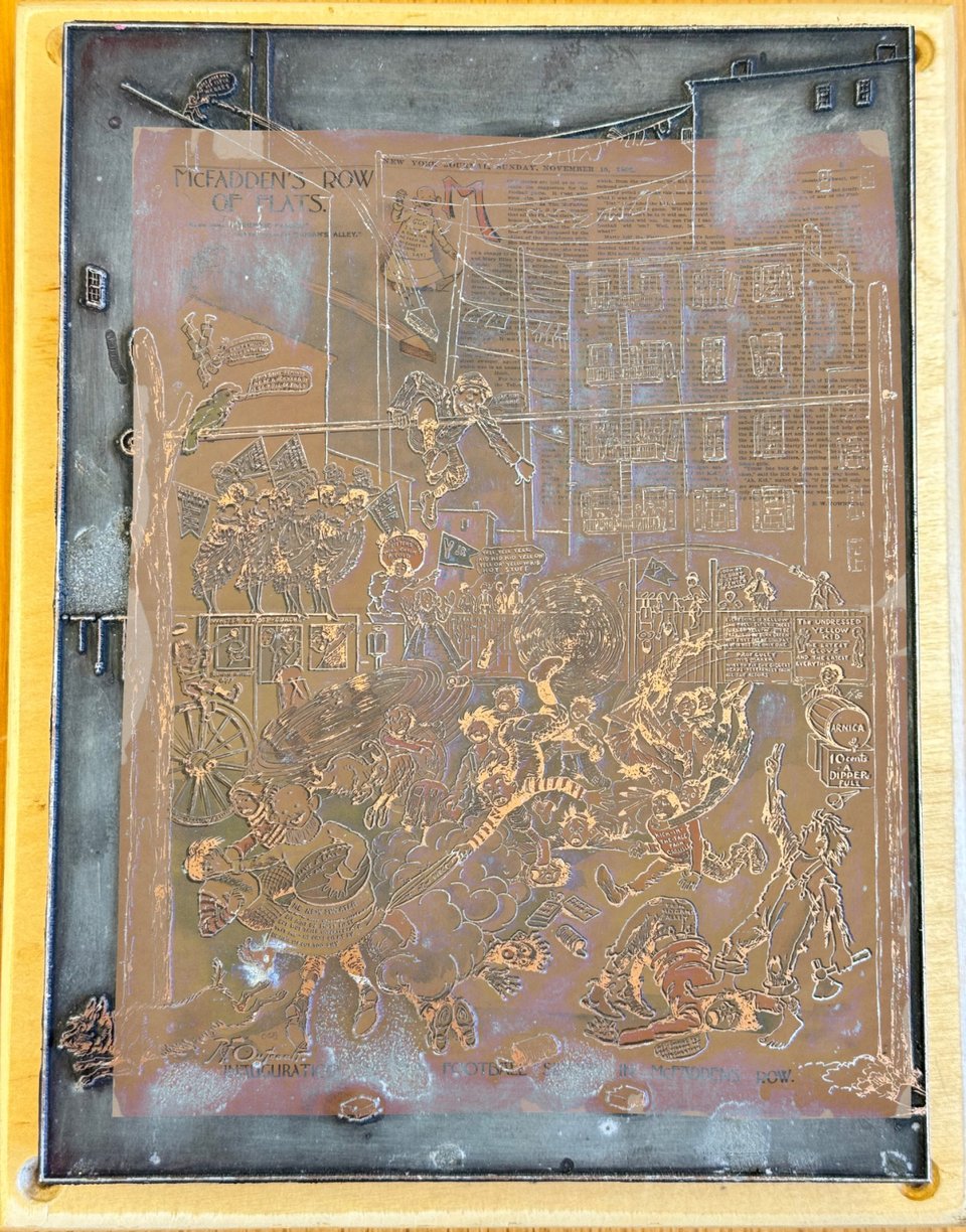 In 2023, the Billy Ireland Cartoon Library & Museum (BICLM, for short) at the Ohio State University acquired a remarkable 1896 comic metal printing plate featuring the well-known early newspaper cartoon “Yellow Kid” character running the ball in a mock football game. They asked for my opinion before purchasing it and, based on photos, I thought it looked both genuine and significant.