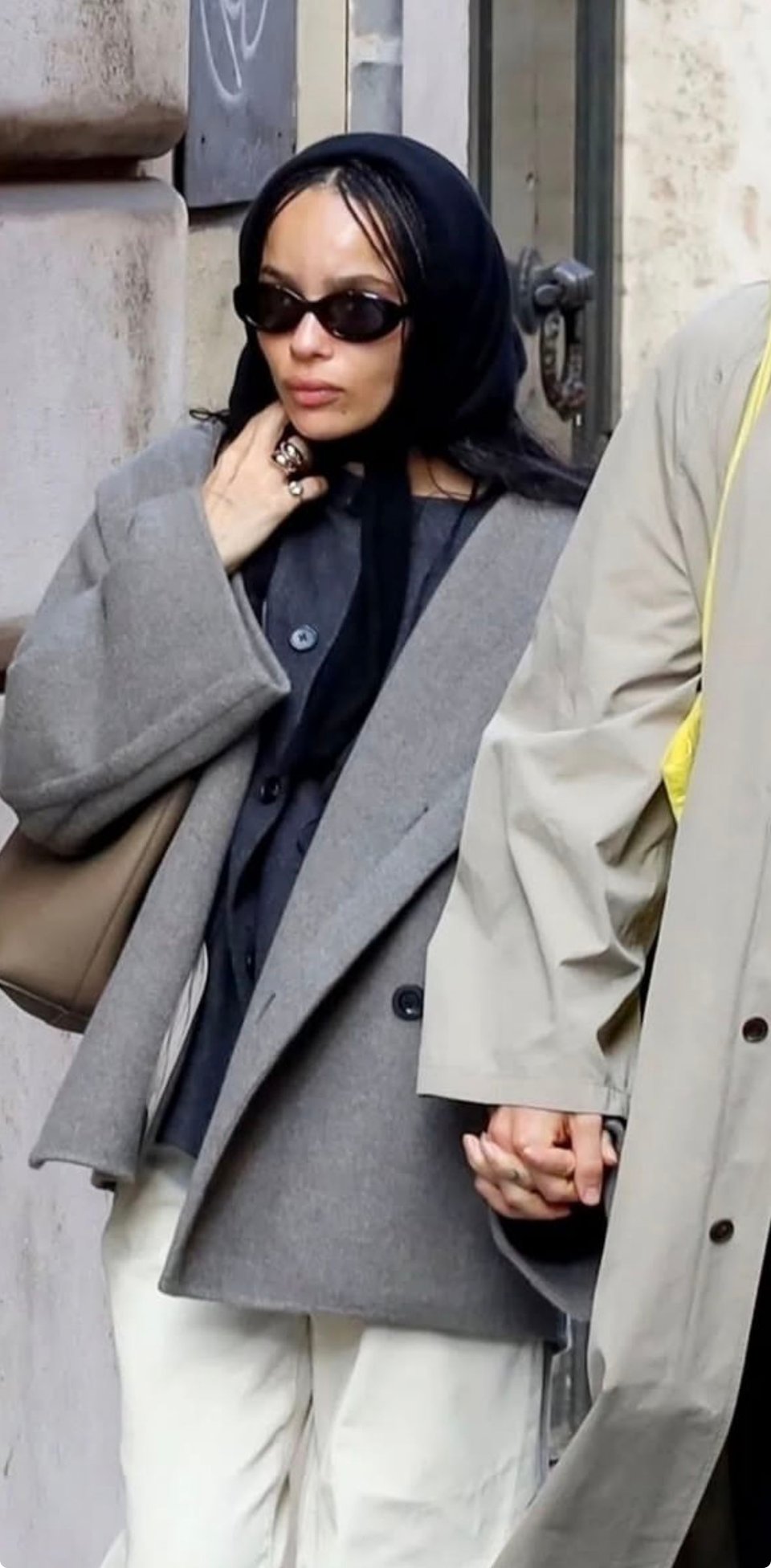 The scarf is all pure brown wool and there is a dainty little embroidery stitched in one of the tree corners that says “PW”. Forget about balaclavas, forget about a world of hats that ruin the outfit. You can have it all, you can both be warm and elegant. I think of this as the winter edition of the ever so chic Audrey Hepburn scarf look. Inspiration was first taken from elegant elderly ladies, but upon second thought from Jackie Kennedy too. Important! The scarf must necessarily be tied under the chin, a little bow or a loose knot under the chin is what makes the look. No back of the head scarf tying allowed - that will result in a completely different look. Even better if paired with big 60s glasses and statement earrings. I feel like Anna Karenina whenever I step into the Swedish cold winter snowstorm with this look, and it’s a wonderful feeling.