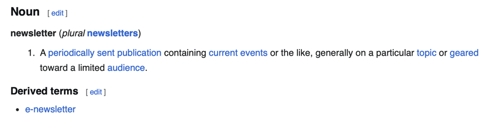 Periodically sent. E-newsletter. Interesting, I love a definition. Thank you, my beloved Wikipedia. It’s this periodically sent publication to a public. It’s a registered conversation in episodes. What is its purpose? To me it’s talking into the world about your world.