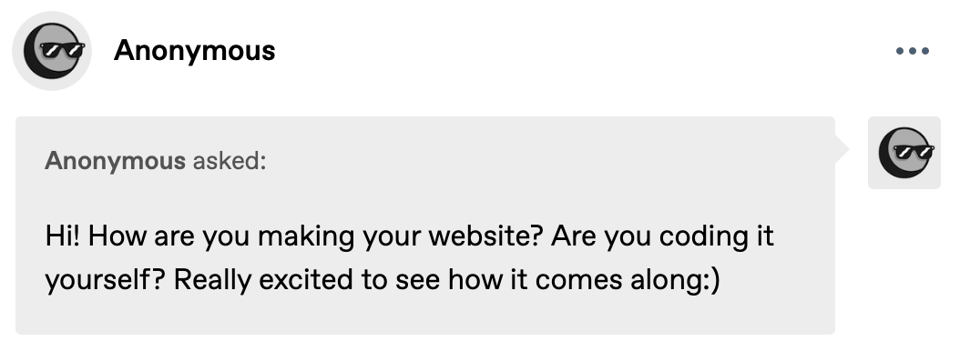 answer: hello and thank you! although I do love thinking about technology and the internet as a world, using it as a craft for digital creations is not my forte. I am no computer scientist but I do love thinking about technology in terms of philosophy and design! Especially, I really love the minimalist look of html as a coding language. To make 26082002.com and imantopia.com I used html only code just from learning how it works from a couple of books I found online and a few I checked out from my university library. imanbenerrabeh.com is my domain for Tumblr so no coding there. This is a hobby for me, so doing it for myself but without the goal of perfection. Learning Html is one of my side quests.